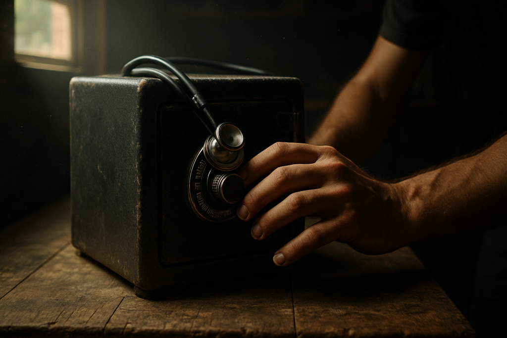 Las horas pasaron sin darse cuenta. Nate veía vídeos de tutoriales en el móvil, pausaba, retrocedía, probaba otra vez. Deslizó un imán fino por la parte trasera, un truco que alguien aseguraba que “despertaba” los mecanismos perezosos. El dial emitió un leve suspiro, luego un clic tan delicado que le recorrió un escalofrío por los brazos. Tiró del asa; no cedió. Tiró de nuevo, y el sello se aflojó con un suspiro suave, como si el aire contenido escapara de golpe.
