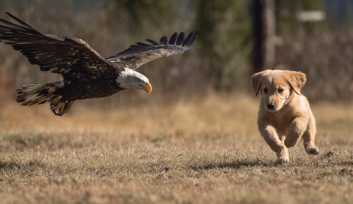 Sobre los tejados volaba un enorme águila real, con las alas brillando al sol. De repente, sin previo aviso, se lanzó en picado hacia uno de los jardines traseros. En un instante, sus garras se cerraron sobre algo pequeño y blanco en la hierba. Antes de que nadie pudiera reaccionar, el ave remontó el vuelo con un cachorro entre las patas. Durante unos segundos, el mundo pareció detenerse. Era como una escena de un documental de naturaleza, solo que estaba ocurriendo allí mismo, sobre su barrio.